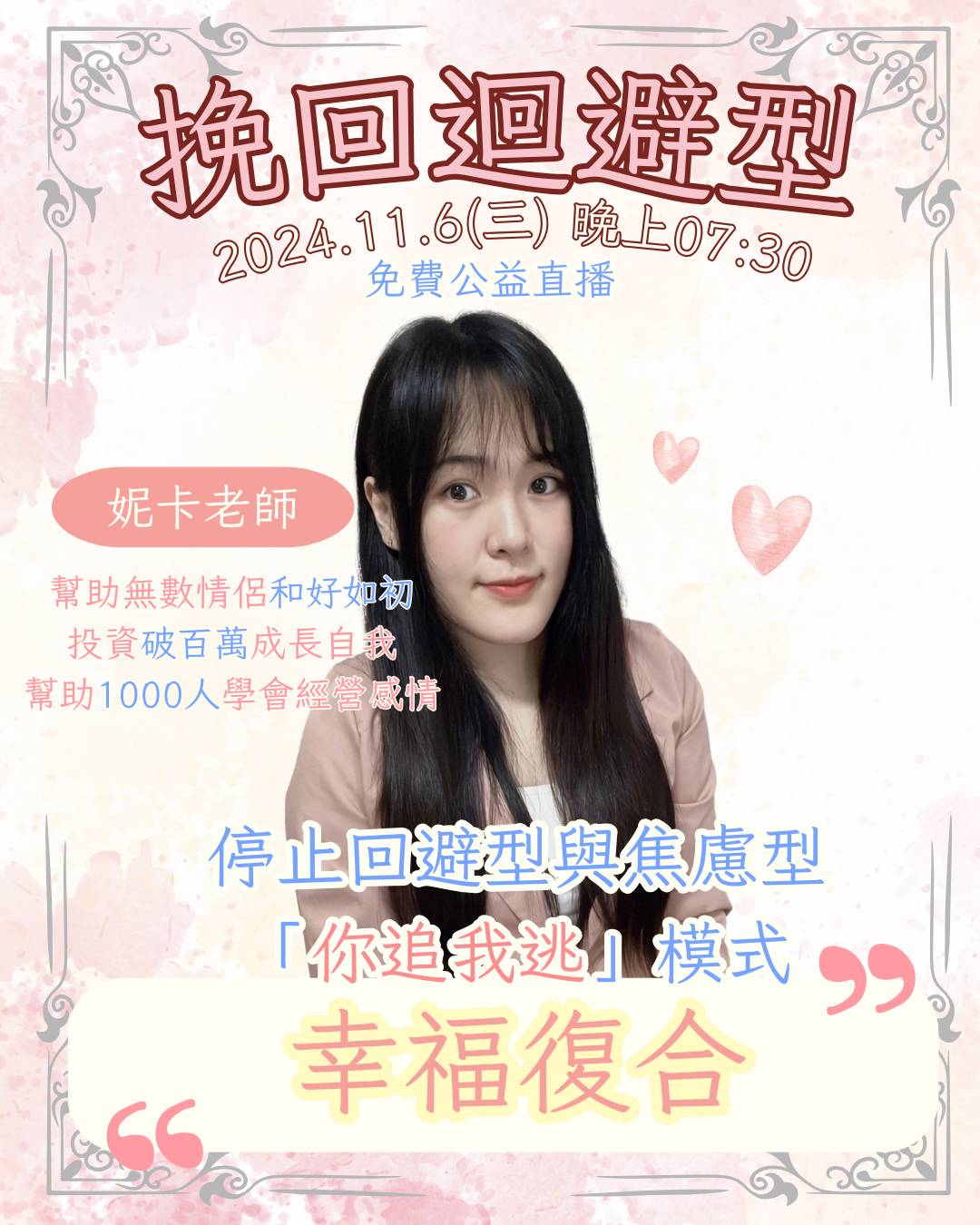 答應我!放棄感情之前一定要來聽完這場公益直播! 你會發現,挽回回避型伴侶其實比你想像中的更簡單!
